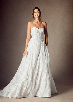 Diamond White Ball-Gown Strapless Floral Burnout Jacquard Dress